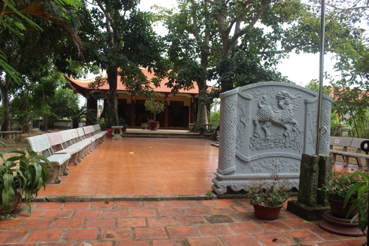 Chuyện kể rằng ngày xưa trong một khu rừng nhỏ, thuộc làng Mậu Hòa, người dân đã phát hiện một pho tượng đá và họ tin rằng đó là một vị thần từ trên trời giáng xuống. Tất cả các bô lão các làng lân cận đều có mong ước được thỉnh pho tượng về làng mình để thờ cúng, nhưng không nơi nào thành công cả, vì pho tượng càng lúc càng trở nên nặng một cách kỳ lạ. Vào một đêm trăng sáng, có tám trẻ mục đồng ở làng Chiêm Sơn mang theo dây thừng và những cây tre chắc dẻo; đã di chuyển pho tượng một cách dễ dàng. Khi đến đầu làng Nam Sơn, thuộc thôn Chiêm Sơn thì đột nhiên dây thừng bị đứt.